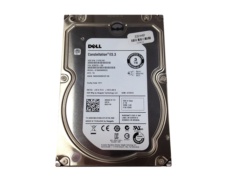 DELL 55H49 3 TB 7200 RPM 128 MB AMPLIFICADOR SAS-6GBPS DISCO RÍGIDO INTERNO de 3.5 Polegadas com BANDEJA PARA POWEREDGE & POWERVAULT SERVER.